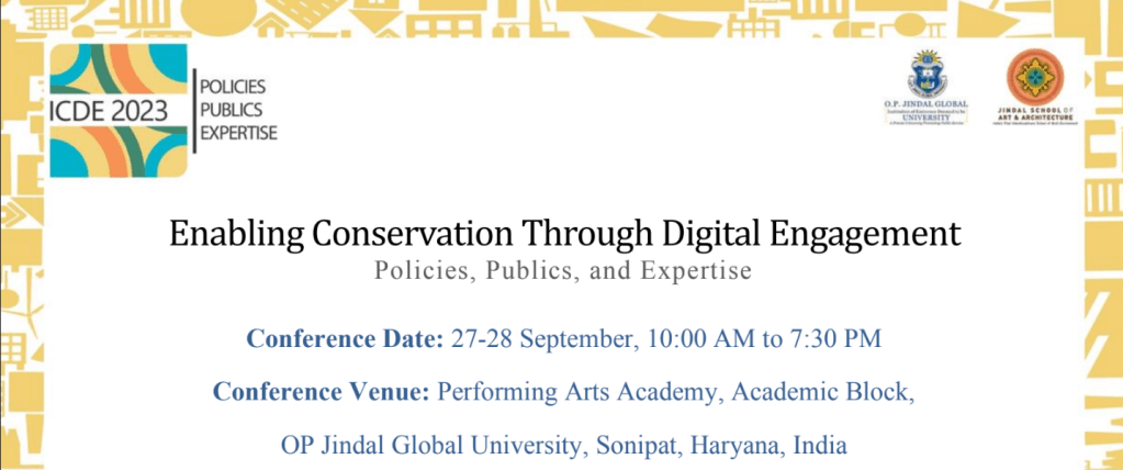 On 28 September 2023, I participated as a panel speaker in the session “Heritage Conservation through Digital Engagement” at the conference Enabling Conservation Through Digital Engagement: Policies, Publics, and Expertise, organized by OP Jindal Global University, Sonipat, Haryana, India (and online).