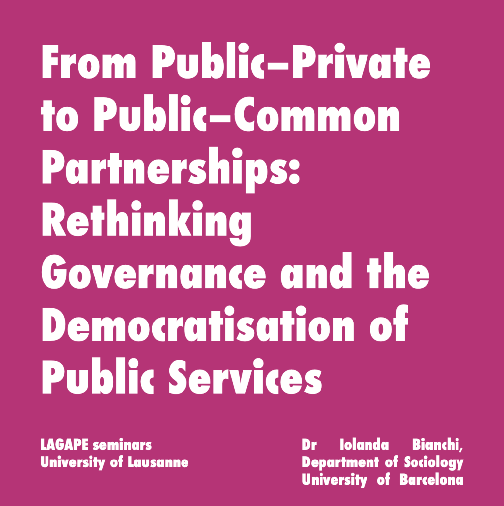 On 23 February 2026, I gave a seminar titled “From Public–Private to Public–Common Partnerships: Rethinking Governance and the Democratisation of Public Services” in the Laboratory for the Analysis of Governance and Public Policy in Europe Seminar Series at the University of Lausanne, Switzerland.