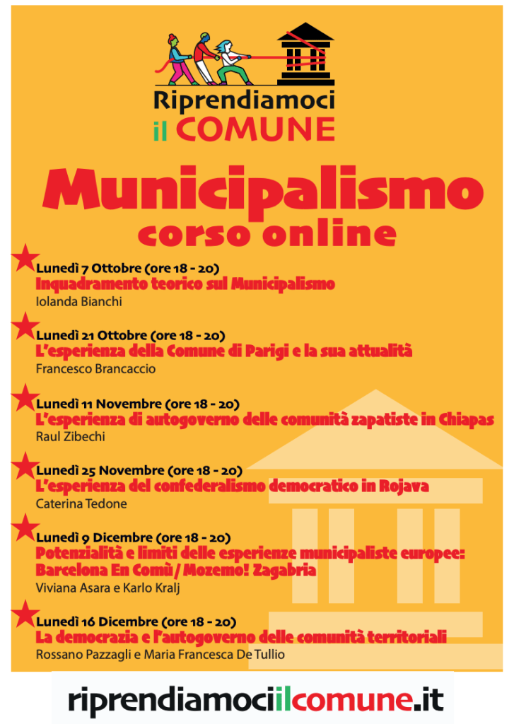 On 7 October 2024, I delivered the seminar “Inquadramento teorico sul Municipalismo” in the online course on municipalism organized by Riprendiamoci il Comune