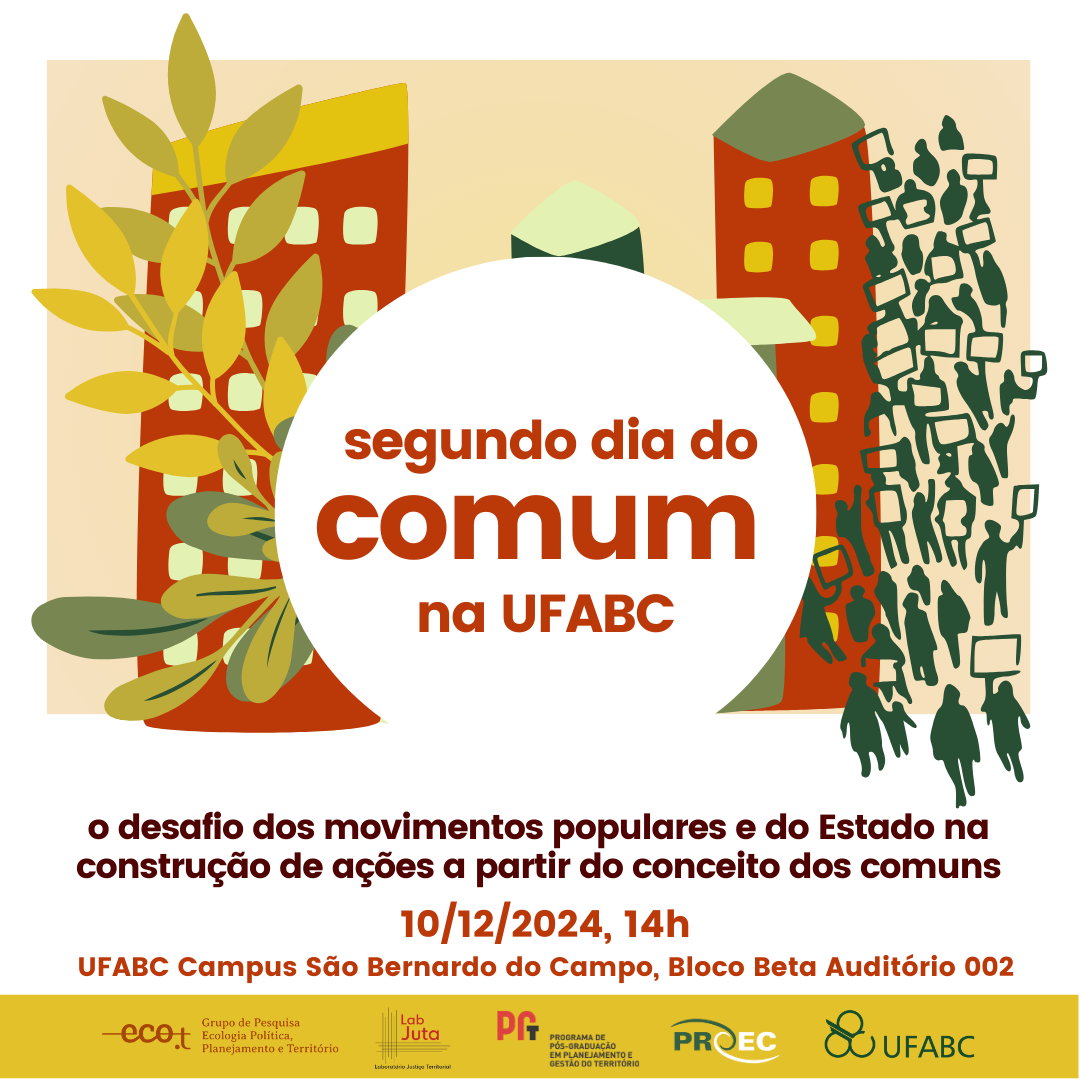 On 10 December 2024, I delivered the keynote lecture “De los comunes a los partenariados público-comunitarios: aprendizajes de ciudades europeas” at the conference Segundo Dia do Comum: O desafio dos movimentos populares e do Estado na construção de ações a partir do conceito dos comuns, held at UFABC (Universidade Federal do ABC), Brazil.